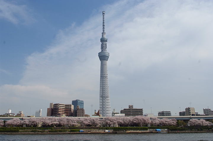 東京スカイツリーと墨提の桜